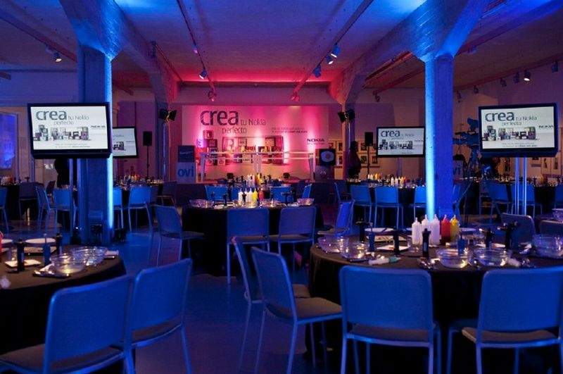 Un espacio con el sitio suficiente para que todos los asistentes se puedan poner alrededor de mesas, por equipos, y que no tenga columnas para que así no haya problemas de visibilidad.