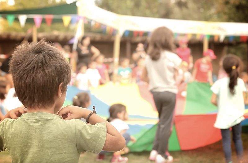 Un espacio lo más amplio posible donde poder hacer varias zonas de juego tanto para adultos como para niños. Si es en exterior, mucho mejor. También se puede hacer en vuestras oficinas. Nos adaptamos al espacio que tengamos.